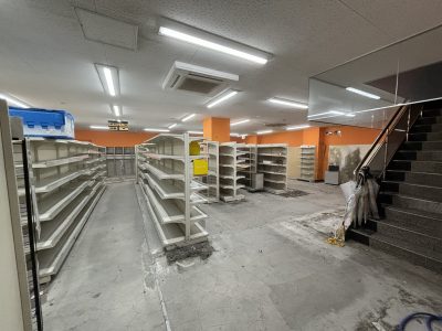 今回の内装解体工事では、スーパー内に残っていました冷蔵庫や棚を撤去し、クロス剥がしを行いました。今回は一日工事でした。
