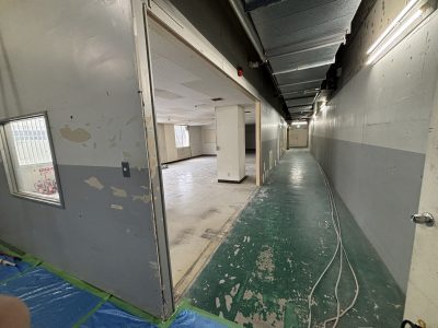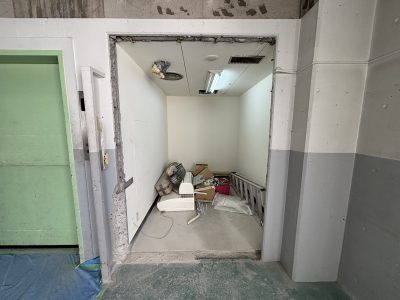 音楽室・トイレを含む校内各部屋の内装をフルスケルトンにし改修工事に向けたクリアな状態に
