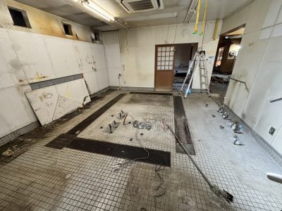 埼玉県岩槻にて、和食店からペットショップへの改装工事に伴う内装解体を行いました。今回の工事では、店舗の用途変更に伴い、カウンターや厨房設備の撤去、床や天井の解体を実施。わずか2日間の短工期で、次の工事にスムーズに引き渡せる状態にしました。
