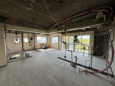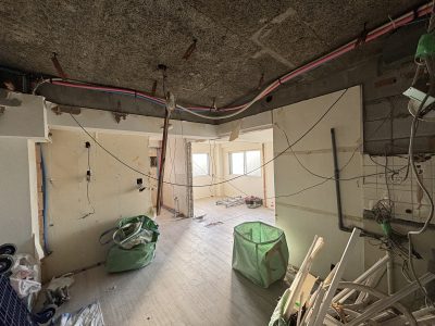今回の工事は、改修工事に向けたフルスケルトン工事を行いました。