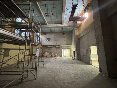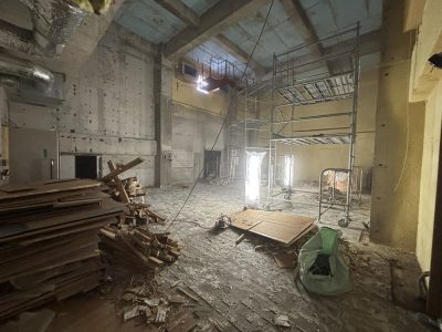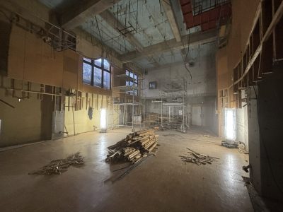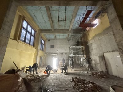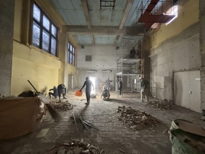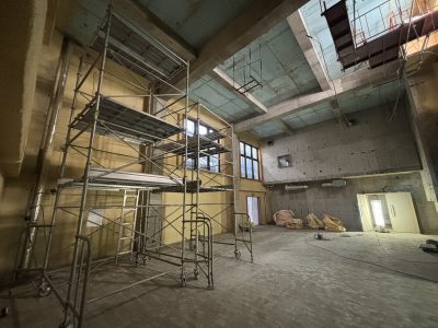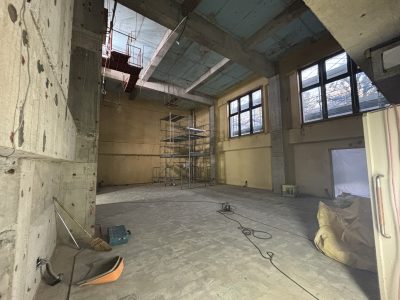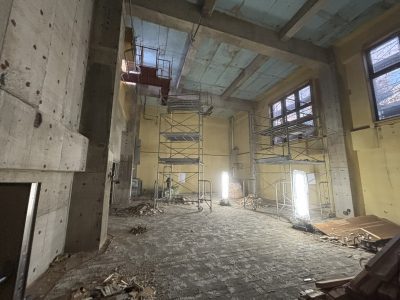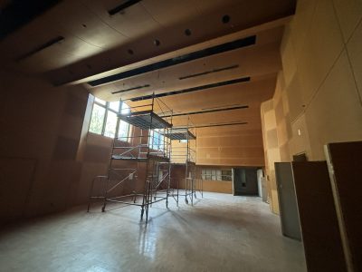 音楽室・トイレを含む校内各部屋の内装をフルスケルトンにし改修工事に向けたクリアな状態に