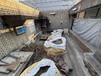 必要箇所の床や浴槽のブロックなどをハツリ、リフォームに適した状態へと整えました。