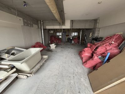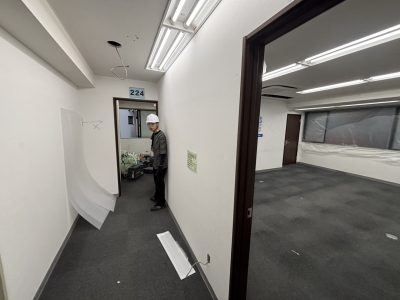 床・壁・天井の仕上げ材をすべて撤去し、原状回復状態に戻す内容となっており、建物や近隣への配慮をしながら丁寧に施工を進めました。