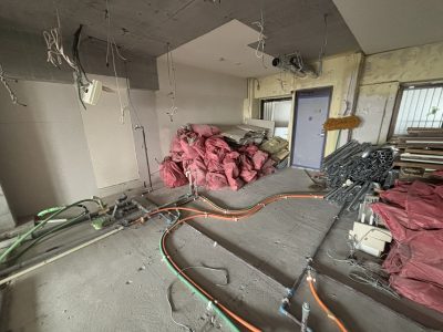 今回の工事は、改修工事に向けたフルスケルトン工事を行いました。
