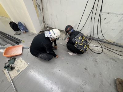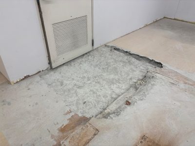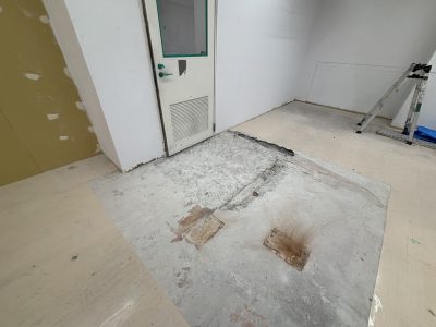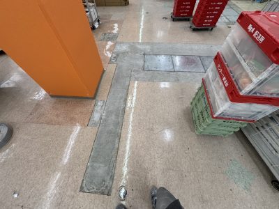 店舗の改修工事に伴い、床材の部分撤去と下地の調整が必要な状態でした。