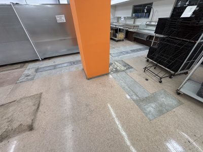 店舗の一部長尺シート撤去と土間の部分ハツリを行い、1日で安全かつ迅速に作業を完了しました。