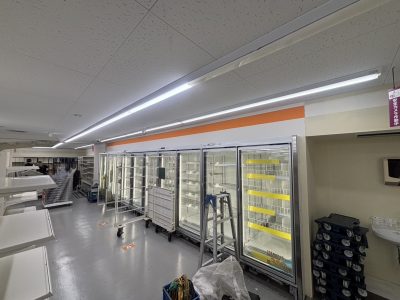 今回は、営業を続けるスーパー内での限定的な作業のため、施工エリアの明確な分離と防音・防塵対策を徹底しました。